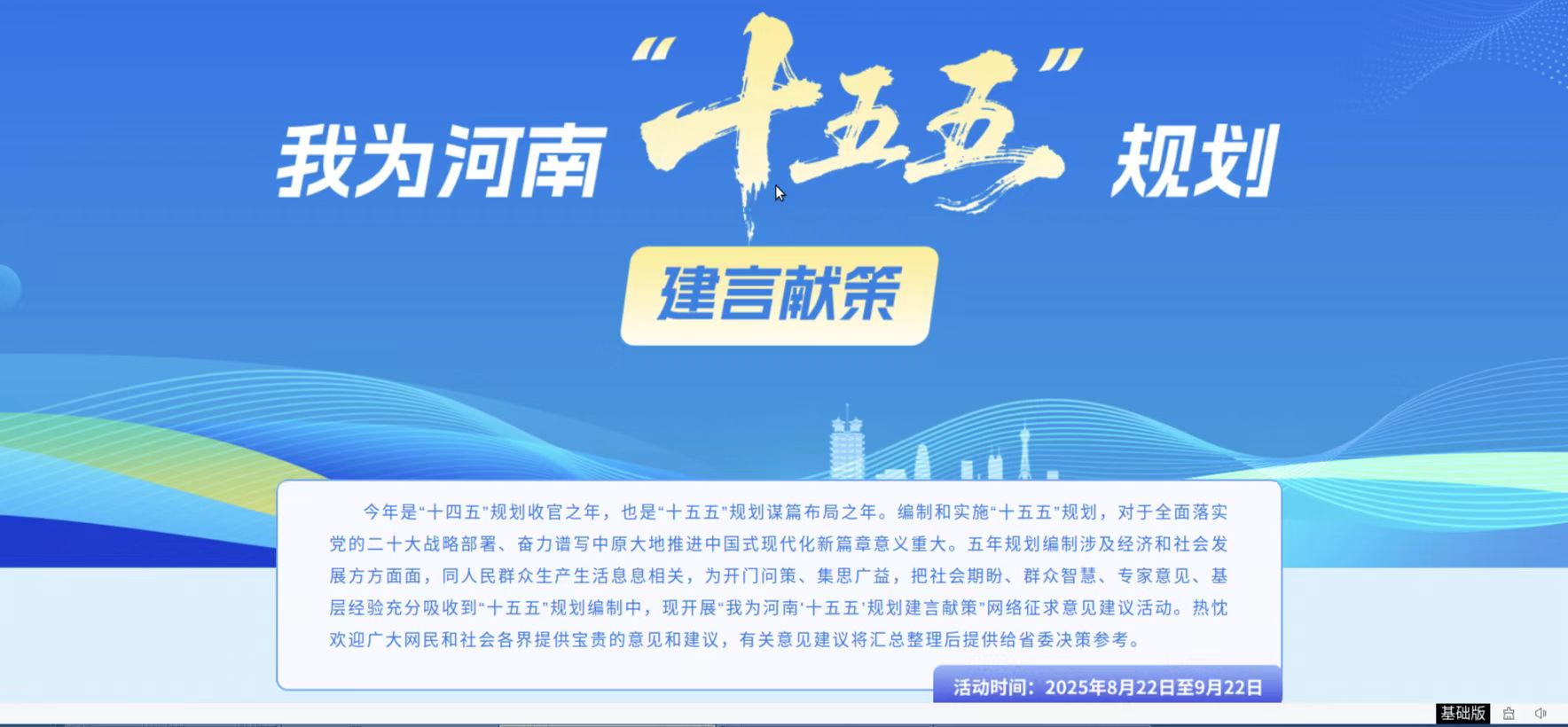 關(guān)于開展“我為河南‘十五五’規(guī)劃建言獻(xiàn)策”網(wǎng)絡(luò)征求意見建議活動的公告